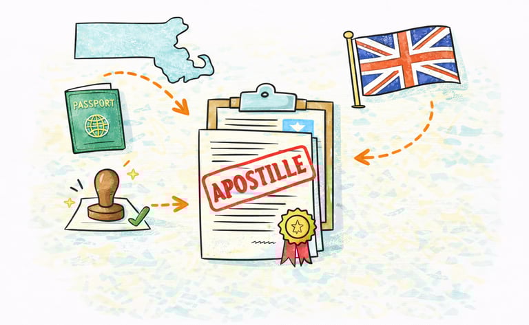 Learn how to get an apostille for UK use from Massachusetts. Document requirements, notarization rules, processing time, and common mistakes explained.